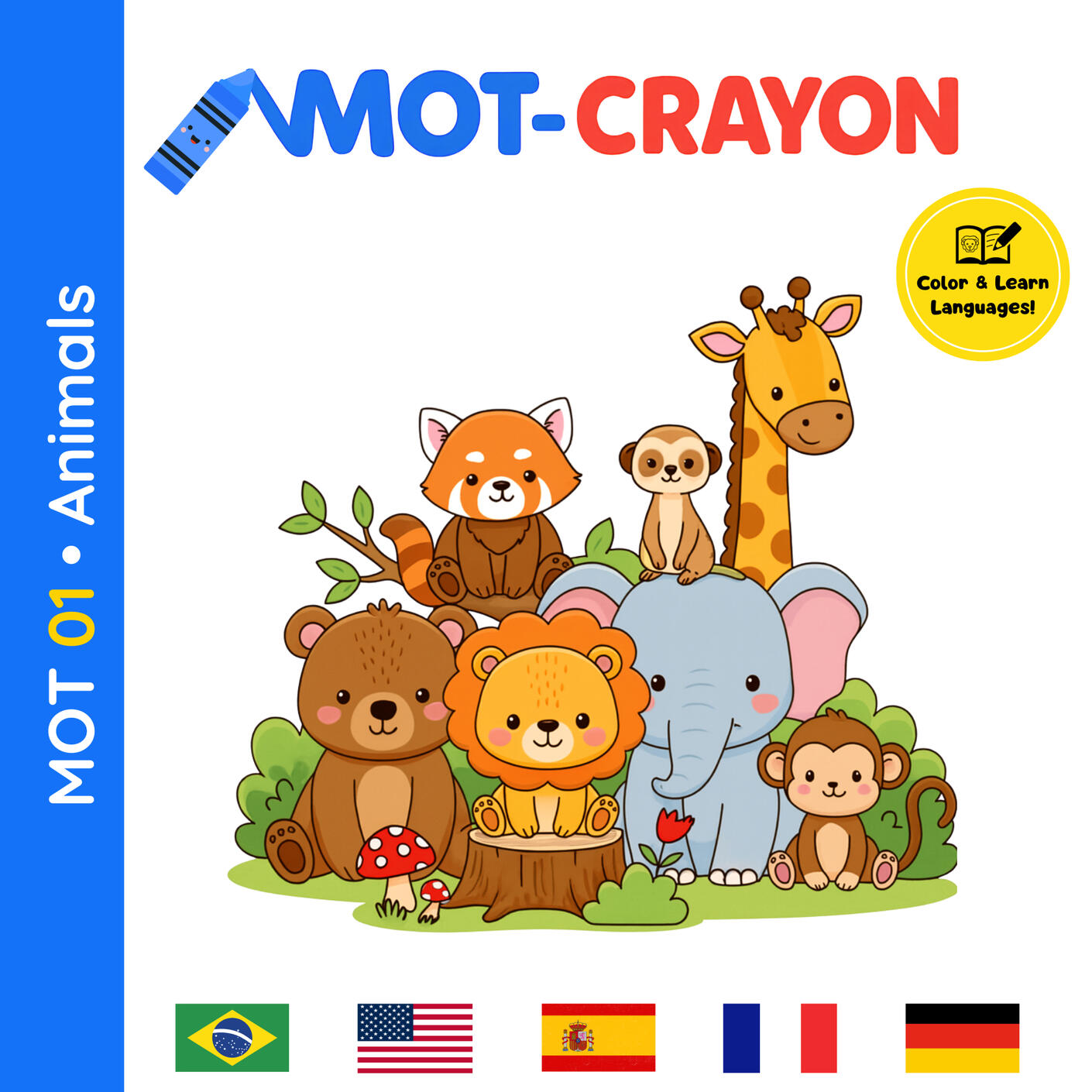 πMot 01 β’ Animals β Learn animal names in 5 languages while coloring.πMot 02 β’ Insects β Coming soon!πMot 03 β’ Farm β Coming soon!πMot 04 β’ Dinosaurs β Coming soon!