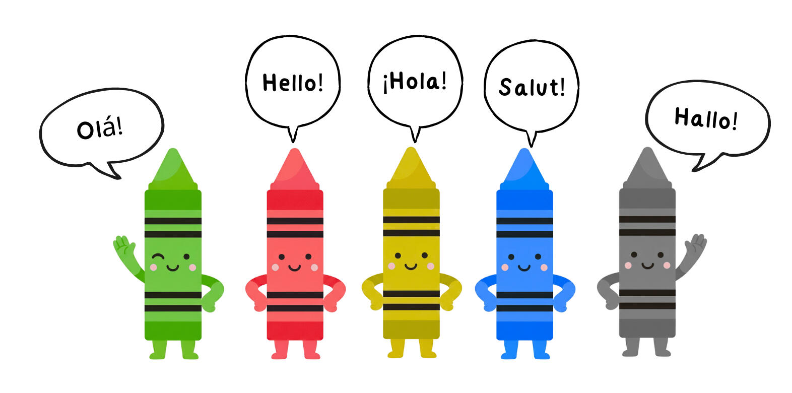 Through coloring, kids explore new themes while discovering words in Portuguese, English, Spanish, French, and German.