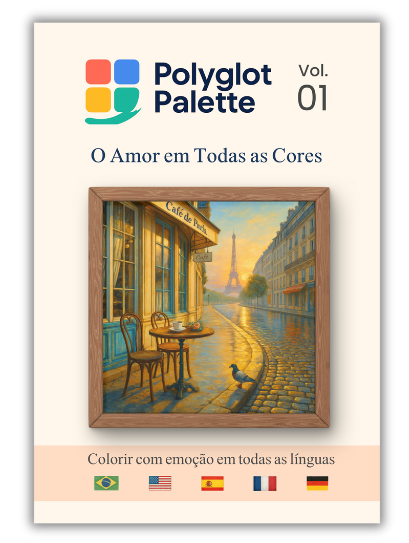 Polyglot Palette – Volume 01: O Amor em Todas as CoresO Volume 01 do Polyglot Palette convida você a colorir cenas poéticas enquanto entra em contato com o amor expresso em cinco idiomas: Português, Inglês, Espanhol, Francês e Alemão.Cada ilustração foi criada para acalmar a mente, estimular a criatividade e despertar a curiosidade linguística, transformando o aprendizado em um momento de prazer e contemplação. As frases curtas e emocionais permitem absorver novos idiomas de forma leve, visual e intuitiva — sem esforço, sem regras.