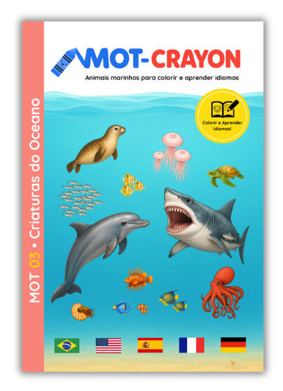 Aprender um novo idioma não precisa ser chato. Com o método Mot-Crayon, seu filho viaja pelo reino animal enquanto aprende vocabulário em 5 línguas simultaneamente (Português, Inglês, Espanhol, Francês e Alemão).